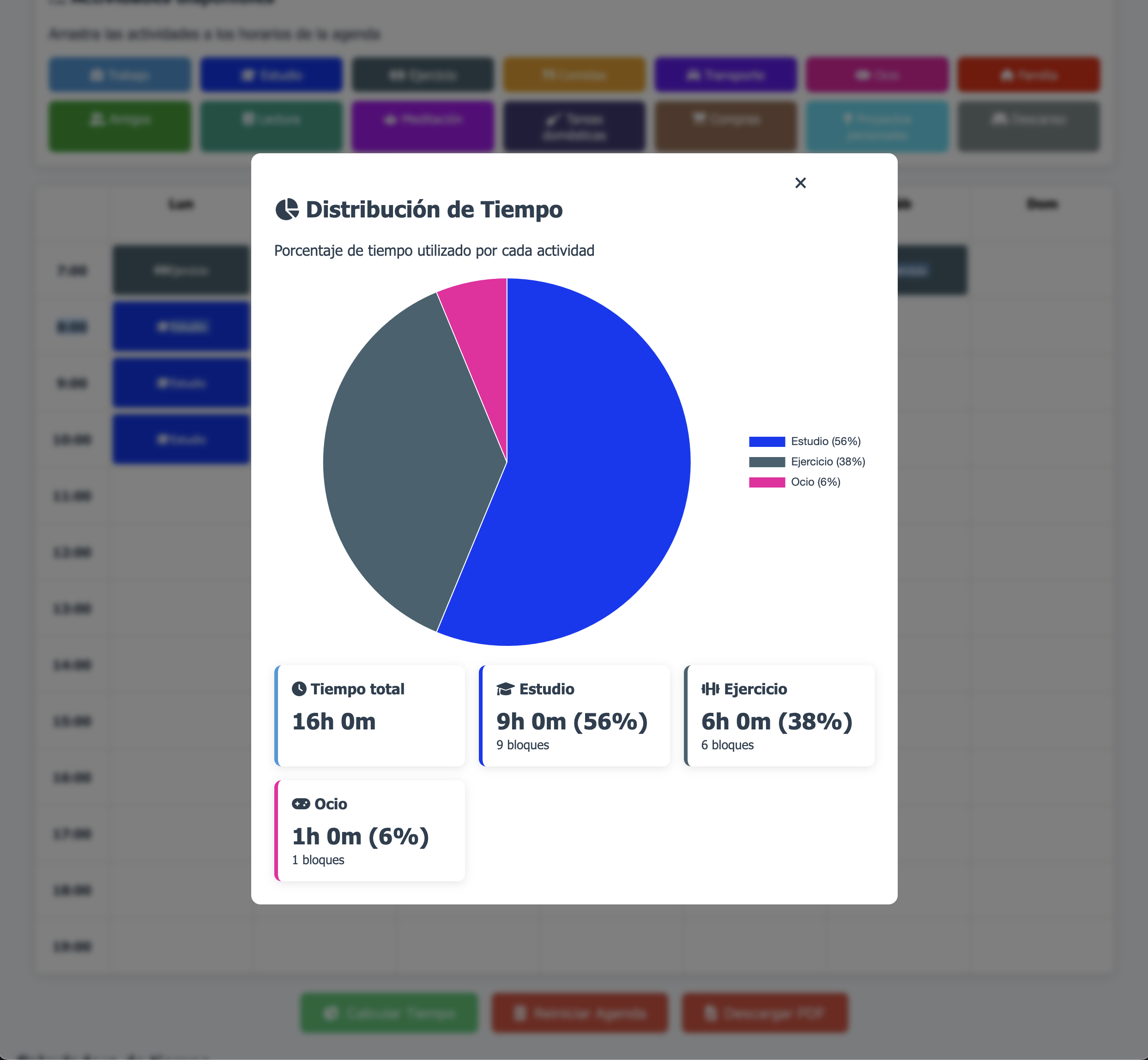 Es una herramienta muy útil y sencilla de usar para distribuir nuestros tiempos, la gráfica me encanto. Solo que no supe cómo guardar el archivo con nombre…