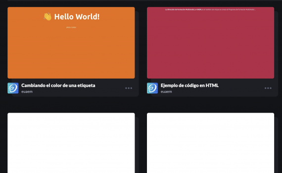 Colección de ejemplos de implementación de diferentes etiquetas que al consultar cada ejemplo permitirá programar una página web básica. Para consultar cada ejemplo visita el siguiente link: https://codepen.io/collection/jbxQjx
