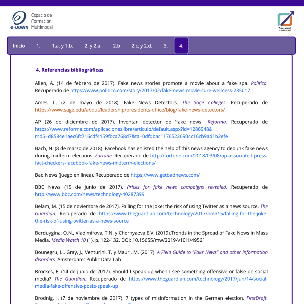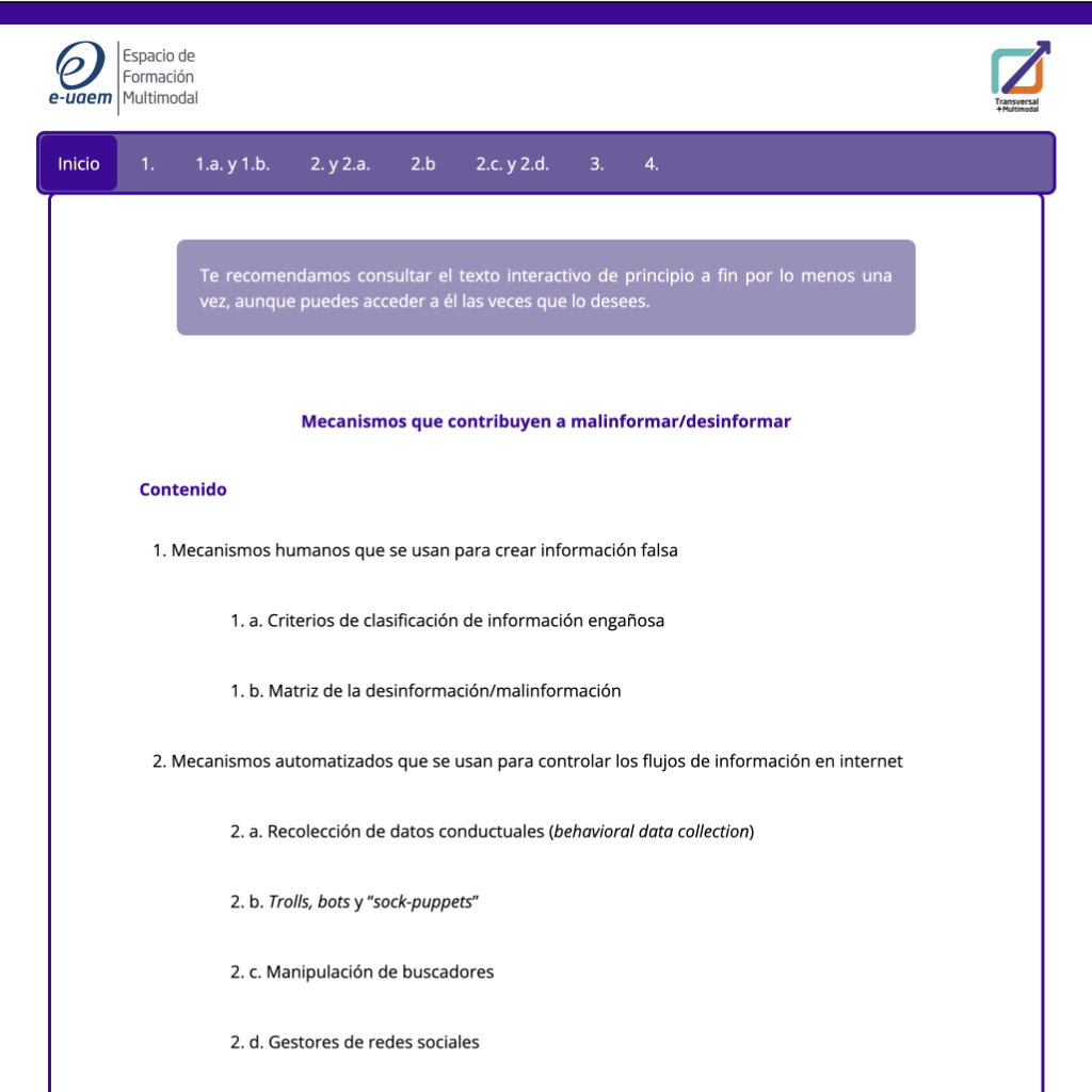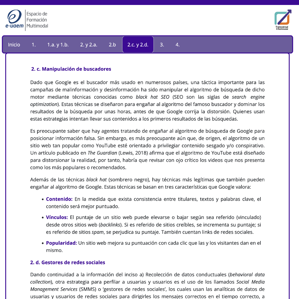 HTML Mecanismos que contribuyen a malinformar/desinformar Publicada marzo 7, 2022 Consulta el recurso en el siguiente link: http://portal.e-uaem.mx/UATM/AID/1228/