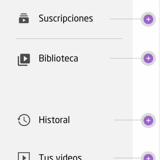 Funciones de usuario. Menú de YouTube