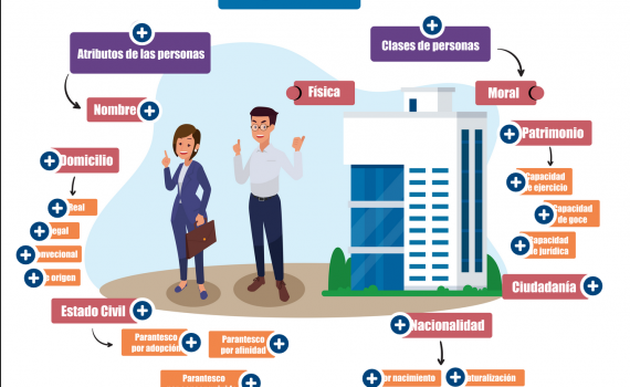 La infografía tiene la intención de presentar a las personas físicas y morales y sus atributos en materia jurídica.