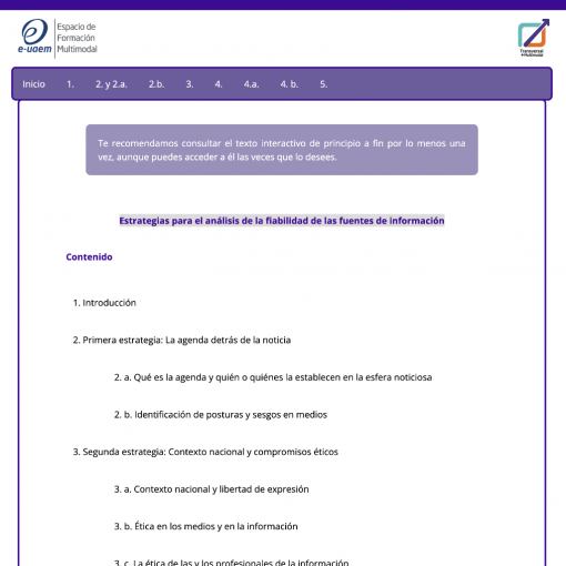 Publicada marzo 7, 2022 Estrategias para el análisis de la fiabilidad de las fuentes de información Consulta el recurso en http://portal.e-uaem.mx/UATM/AID/1232/